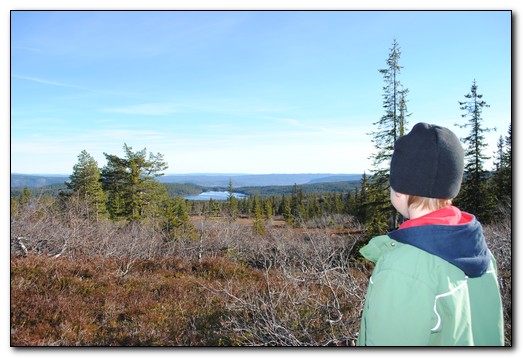 Etter en times tid kom vi opp over tregrensen og kunne se litt av utsikten. Selv om tregrensen var målet hadde vi nå fått øye på toppen og da Sindre ikke var sliten bestemte vi oss for å gå opp til den
