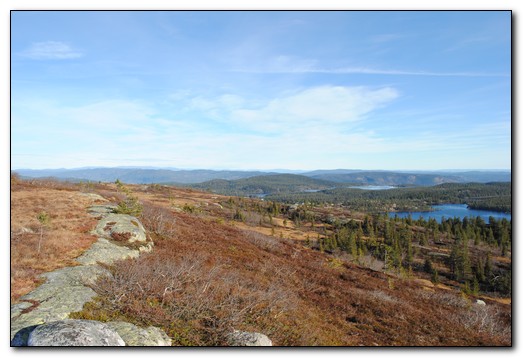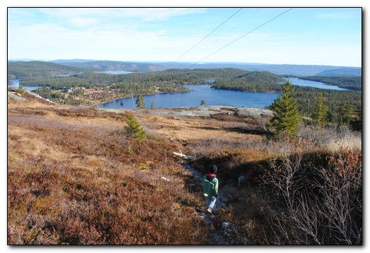 Utsikten ned mot dalen og sandvatnet.