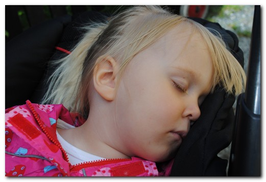 Alle pleier å bli trøtte av sjøluften, Emeli måtte gi opp i vognen sin.