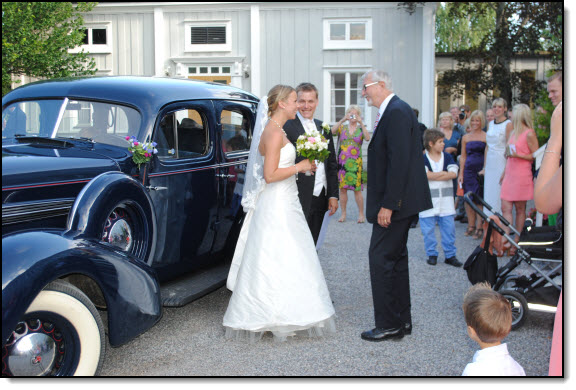 Brudeparet ble kjør fra kirken til Søråker Herrgård standsmessig med en gammel oldsmobile.