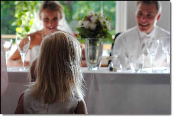 Foran brudeparet var det plassert en krakk så gjestene kunne ta en nærmere prat med brudeparet under middagen. Emeli varen flittig gjest på denne da hun pignet til utover kvelden.