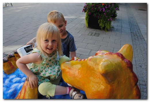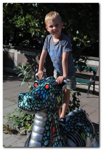I Sundsvall var det en masse drager i gågata. De var perfekte å klatre på.