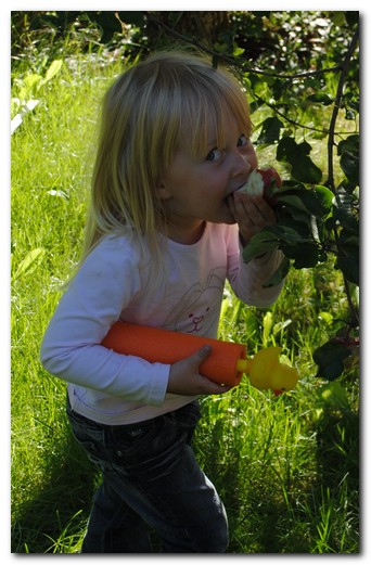 Vel hjemme var eplene modne, hvorfor kaste bort tiden med å plukke dem før de spises når de henger i rett høyde?