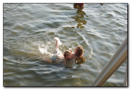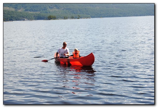 Gamle kunster var ikke glemt, så Sindre fikk seg en kanotur også. Men en middelaldrene menskekraft kunne ikke konkurere med 9.9 hestekrefter så den hvite båten var fortsatt favoritten.