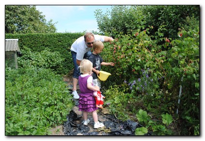 Vel framme var det rett ut i blåbærlyngen med barna. Her var det mer blåbær enn selv Emeli kunne klare å spise, Sindre plukket flere kopper med blåbær som delvis ble spist av ham selv og delvis gikk til å lage blåbærsyltetøy til vaflene.