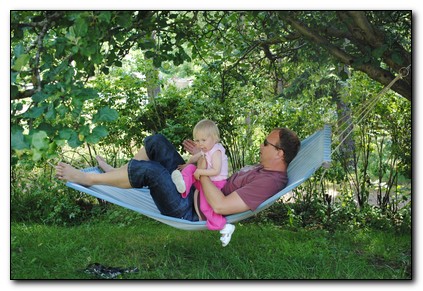 Dag försöker få en liten stund för sig själv i hängmattan med det var fler som ville vara med….