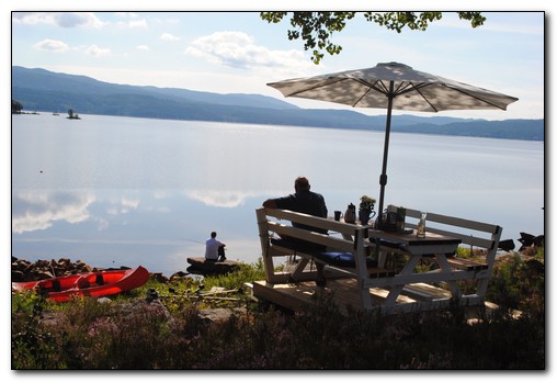 Jeg fikk prøvd fiskelykken, eller snarere mangel på fiskelykke. Ingvar påsto at det var nesten umulig å få noe på blikkstille vann. Om det er sant eller kun noen trøstende ord vites enda ikke.